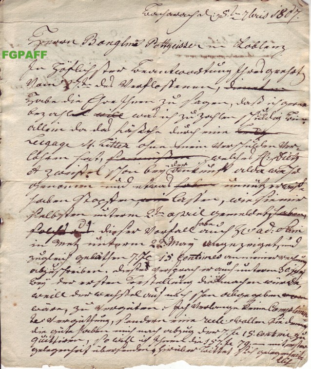 | dünnhäutiger Brief noch von Dietz u. Zweiffel , Coblenz 9. April 1807: |